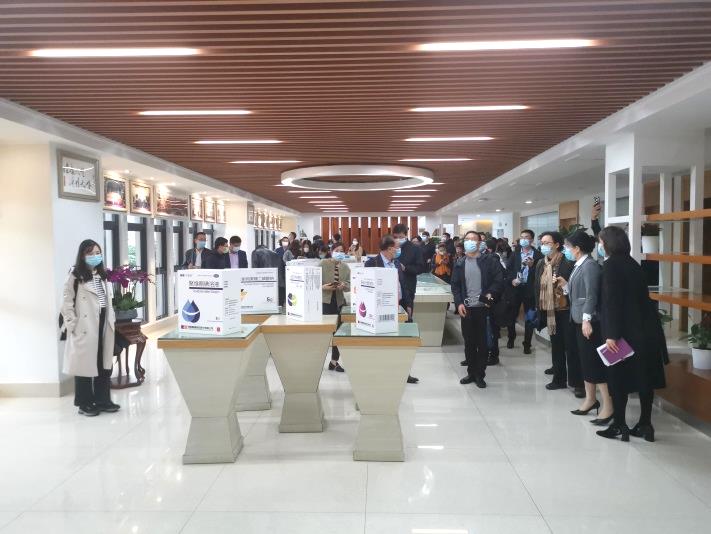 下午2點,大巴車來到位于海口國家高新區藥谷三橫路8號的皇隆廠區。來自全國各地的研發CRO公司以及制藥企業等大約70位高層人士對公司進行了實地參觀和交流。嘉賓們首先對公司展廳進行了參觀游覽,皇隆制藥常務副總史江永女士介紹了公司的發展過程和產品情況。