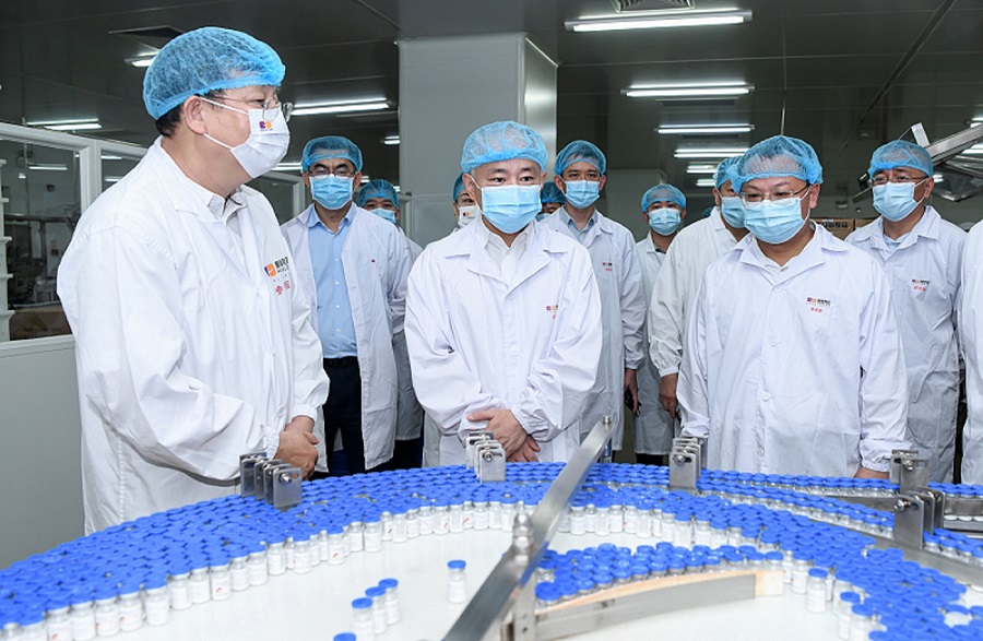 9月5日上午,海口市委副書記、市長丁暉帶領市政府相關部門主要負責人來到皇隆制藥調研。