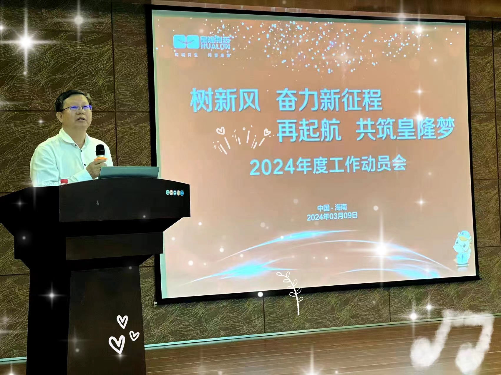 公司董事長、總經理陳益智做總結。他首先感謝過去一年全體員工所做的努力,對部門管理人員的述職表現和高管的培訓給予了充分肯定。然后陳總開始就2024年進行工作總動員。根據會議主題“樹新風,奮力新征程;再起航,共筑皇隆夢”!董事長進行重點深入的詮釋,就此引入皇隆的企業文化、闡述皇隆文化的內涵,要求大家大力弘揚皇隆優秀文化,擦亮皇隆制藥品牌名片,增強皇隆文化自信!同時對2024年如何樹立榜樣、弘揚精神,激發團隊活力做出了動員。