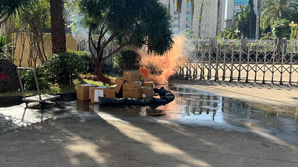 下午15:00點,全體人員來到戶外進行了2024年度安全消防及突發環境事件應急演練。本次演練腳本共有兩個模擬場景,分別是突發環境事件應急演練、消防安全應急演練。